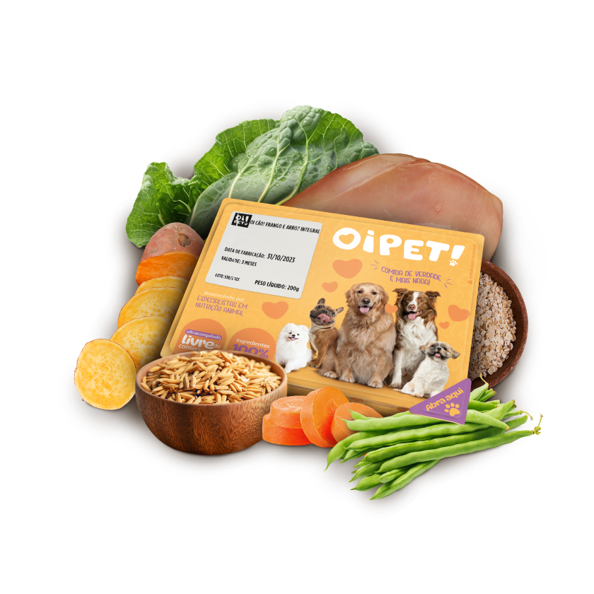 Calcule a quantidade diária ideal de Alimentação Natural OiPet! que seu pet precisa.